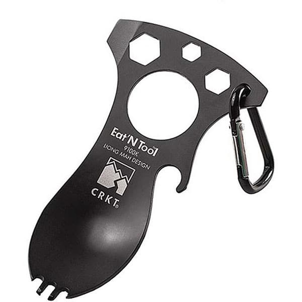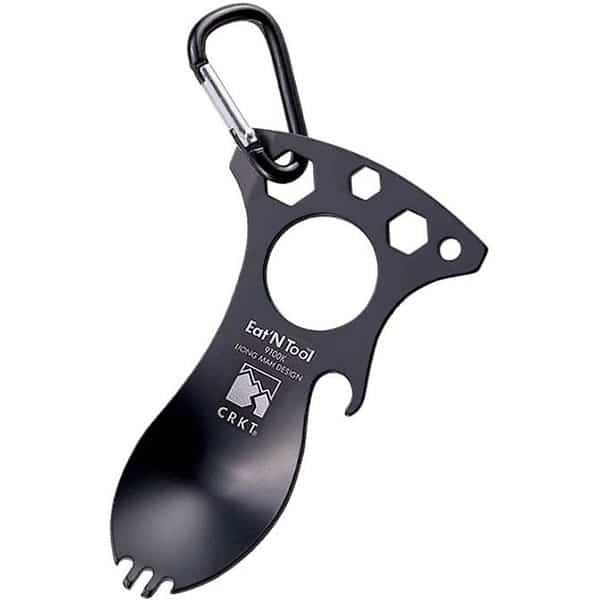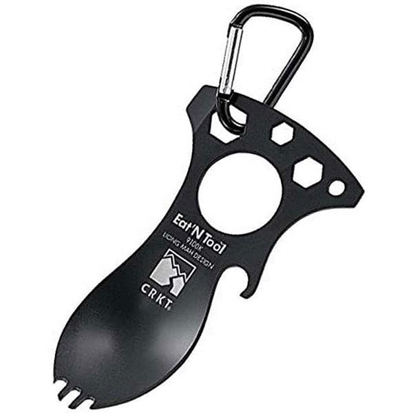 قاشق سفری CRKT کوچک مدل 9100 مناسب برای طبیعت گردی و کمپینگ دارای دربازکن و کارابین است این قاشق چندکاره با جنس فلزی ضد زنگ و با کیفیت است و وزن مناسبی دارد