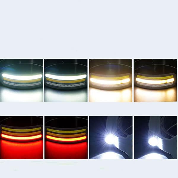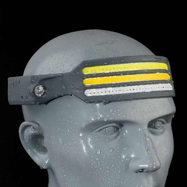 لامپهای این چراغ پیشانی شامل 3 ردیف نوار نوع COB است و یک چراغ ال ای دی در کنار سر نیز میباشد. شکل قرار گرفتن هدلامپ روی پیشانی باعث میشود تا زاویه ای حدود 230 درجه را روشن کند.