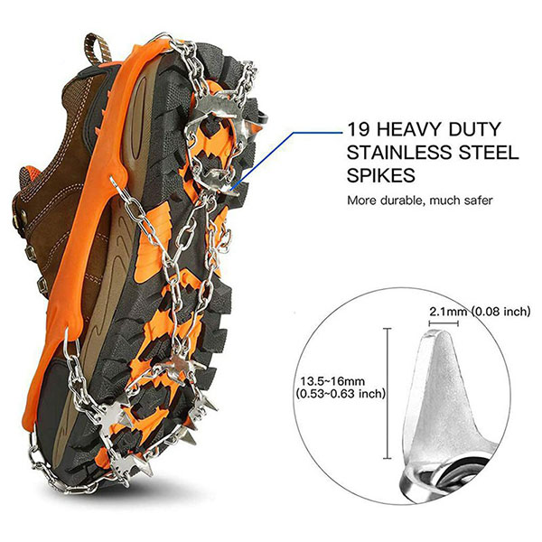 کرامپون 19 شاخه ژله ای مناسب برای فصل زمستان است. این یخ شکن ها مزیتش به دلیل راحتی بستن به روی کفش و باز کردن آن است. همچنین به دلیل کوچک بودن شاخههای این یخ شکن ها می توانید در موقع خارج شدن از منطقه برف و یخ درنیارید. اما بهتر است که یخ شکن را بیرون بیارید.