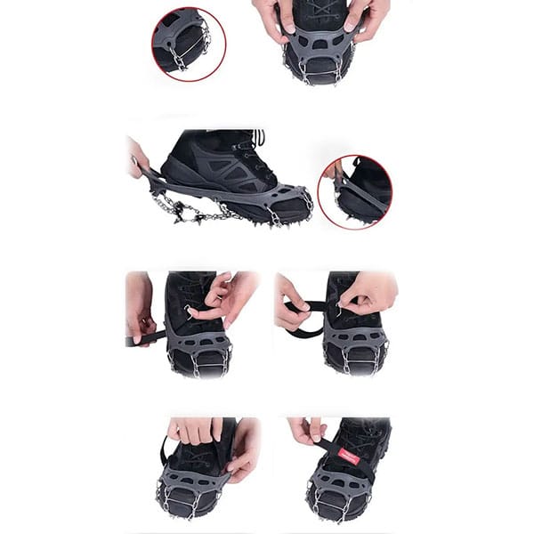 - پس از بستن یخشکن، چند قدم بردارید تا ببینید که بهدرستی روی کفش نشسته است.